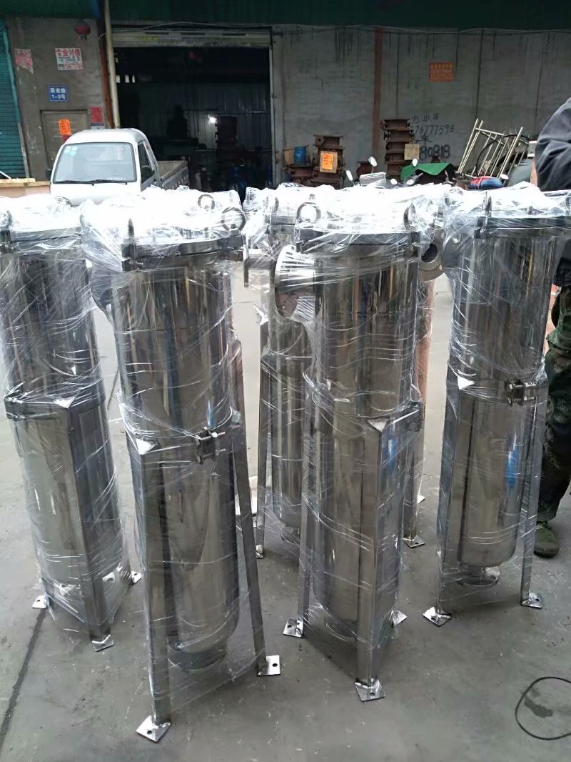 袋式過濾機是一種壓力式過濾裝置,主要有過濾筒體、過濾筒蓋和快開機構、不銹鋼濾袋加強網等主要部件組成,濾液由過濾機外殼的旁側入口管流入濾袋,濾袋本身是裝置在加強網籃內,液體滲透過所需要細度等級的濾袋即能獲得合格的濾液,雜質顆粒被濾袋攔截。該機更換濾袋十分方便,過濾基本無物料消耗。