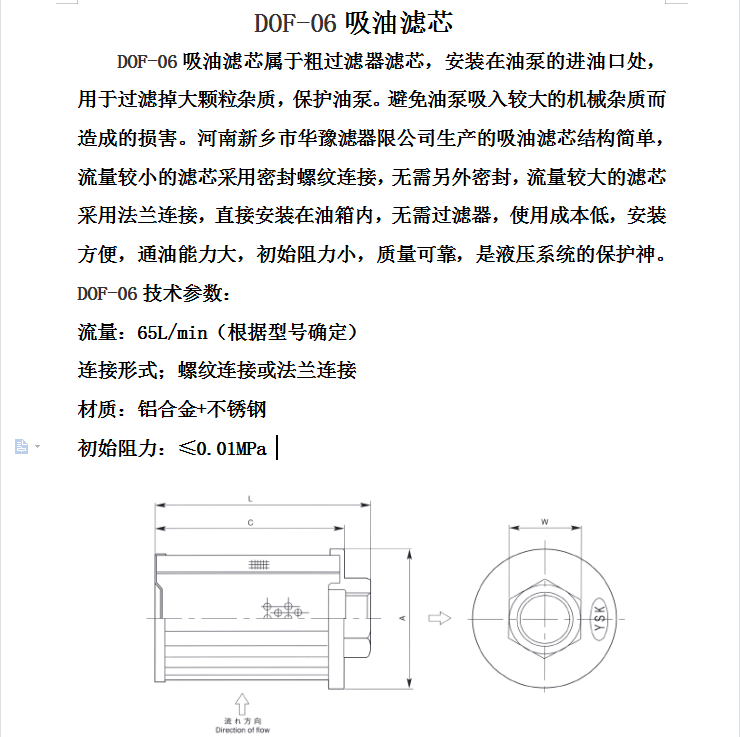 華豫濾器供應(yīng)韓國濾芯DOF-06吸油濾芯